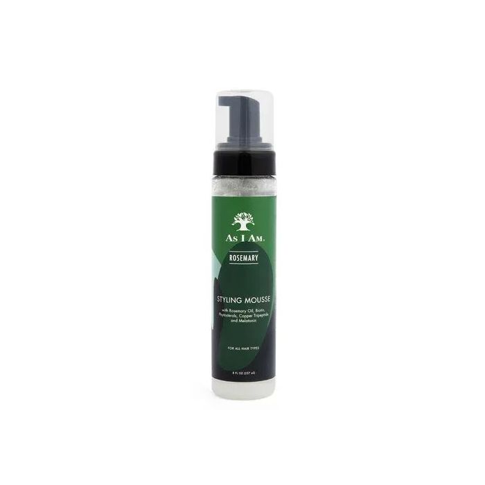 Descubra a AS I AM Rosemary Styling Mousse, a derradeira mousse para styling para caracóis definidos e cabelos mais fortes. Enriquecida com o poder do óleo de alecrim para o crescimento do cabelo e com a refrescante hortelã-pimenta, esta fórmula limpa e vegana não só oferece uma fixação leve e flexível sem resíduos, como também melhora a saúde do couro cabeludo.