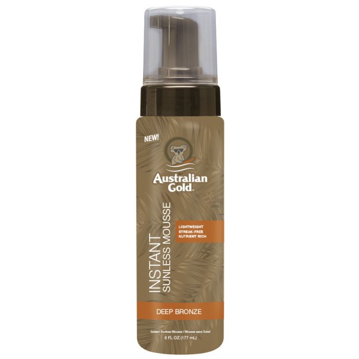AUSTRALIAN GOLD Espuma Autobronzeadora Instant Sunless Mousse, ideal para quem deseja cores dramáticas sem sol e fáceis de aplicar em casa.