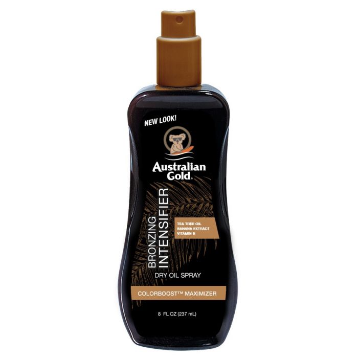 Um bronzeado duradouro e que cuida da sua pele ao mesmo tempo? O Óleo Seco Acelerador de Bronzeado em Spray da Australian Gold bronzeia e hidrata profundamente a pele graças à sua tecnologia exclusiva ColorBoost™ e sua formulação rica em Extrato de Banana e Tirosina. É um óleo seco, de textura agradável e absorção rápida que não deixa gordura na derme. Poderá vestir-se ao momento!