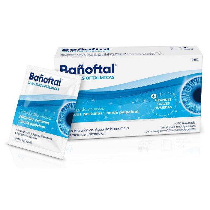 Toalhitas para os Olhos BAÑOFTAL : Higiene dos olhos, lenços para a higiene externa dos olhos. Lenços umedecidos estéreis, especialmente desenvolvidos para o cuidado e higiene diária das pálpebras, cílios e rebordo palpebral de crianças e adultos.