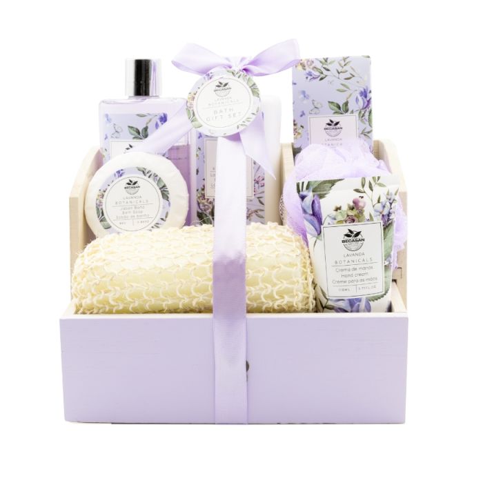 Becasan Nature Cesto de banho de madeira com lavanda da Lavender Botanicals Set