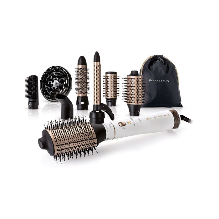Brush & Styler GH20 8 em 1 modelador de ar quente com 8 acessórios para criar diferentes penteados enquanto seca o cabelo.
