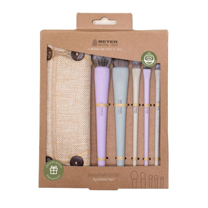 Estojo de enrolar com 5 escovas de pelo sintético, cabos em fibra de trigo.