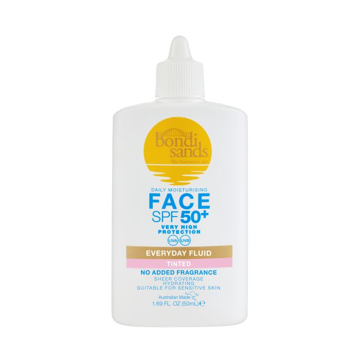 Protege a tua pele todos os dias com o Fluido Facial com Cor SPF50+ Sem Fragrância da Bondi Sands. Este fluido ultraleve combina: