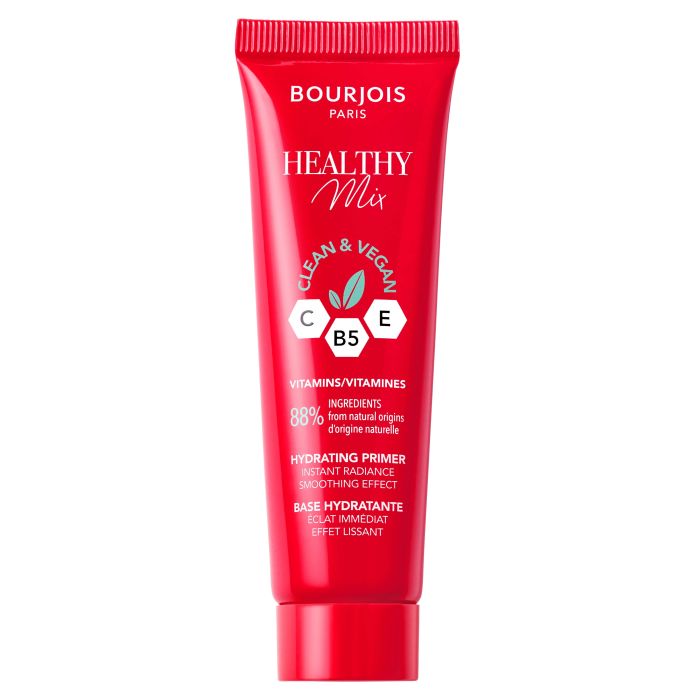 Consegue imaginar a sua pele completamente melhorada e cheia de luz? Nós damos-lhe a solução. O primer de maquilhagem Healthy Mix, formulado com uma mistura saudável de vitaminas C, E e B5, oferece até 6 horas de hidratação e duração.