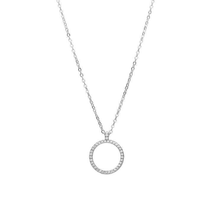 O Colar Brightness é feito em prata de lei, com círculo brilhante. Um design que reflete a luz interior e eleva cada movimento com uma elegância radiante.