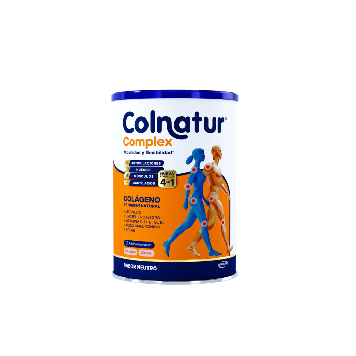 Colnatur® Complex Neutro é um suplemento alimentar em pó que ajuda a manter a mobilidade e flexibilidade graças à sua fórmula 4 em 1, pensada para o cuidado completo de articulações, ossos, músculos e cartilagens.