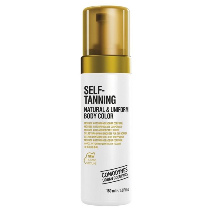 COMODYNES SELF TANNING BODY MOUSSE: Comodynes corporal Comodynes Mousse autobronzeadora. Forneça um BRONCEADO DORADO NATURAL e uniforme a partir das 3 horas de seu Aplicação. Textura macia, fofa e leve. Muito extensibilidade, penetra e seca rapidamente na pele.