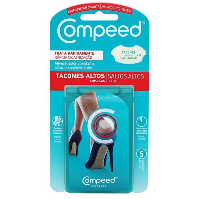Ampolas de salto alto Compeed calcanhar tratam e aliviam instantaneamente a dor e a fricção do calcanhar.