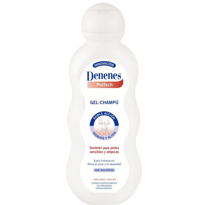 DENENES PROTECH SHAMPOO GEL: Denenes ProTech Gel-Shampoo é formulado para manter a pele mais seca e sensível, mesmo atópica, cuidada. Sua tecnologia DOUBLE ACTION hidrata e alivia a coceira e vermelhidão para restaurar o equilíbrio da pele. Suas fórmulas sem parabenos e hipoalergênicas são testadas sob controle dermatológico e pediátrico.