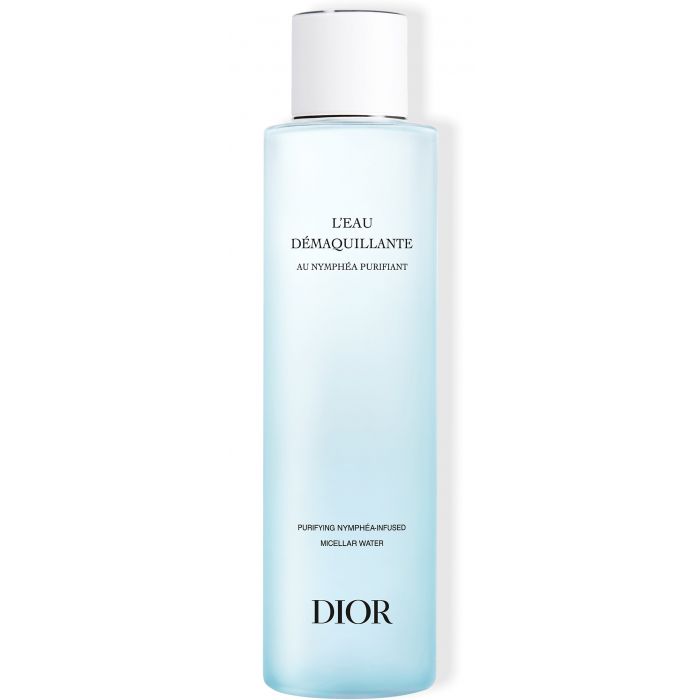 Composta por 98%* de ingredientes de origem natural, esta Água Micelar Desmaquilhante para Rosto e Olhos da DIOR combina as propriedades purificantes do nenúfar branco francês com ácido hialurónico, água floral de centáurea e saponinas.