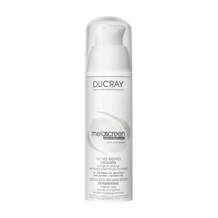 DUCRAY MELASCREEN CREME DESPIGMENTADOR: Ducray Melascreen Creme Despigmentante é um tratamento de ataque que visa as zonas de hiperpigmentação ou de manchas escuras do rosto, pescoço e decote.
