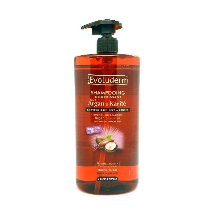 EVOLUDERM SHAMPOO NOURRISSANT ARGAN E KARITÉ: Champô nutritivo especialmente formulado para cabelos secos e muito secos, à base de manteiga de karité e óleo de argão.
