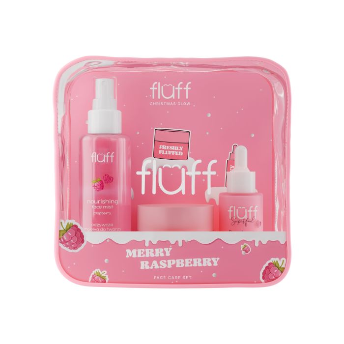 O set de cuidados corporais Merry Raspberry da Fluff é um must-have para quem procura um cuidado facial nutritivo, refrescante e frutado energizante. Enriquecido com extrato de framboesa, este kit hidrata, revitaliza e deixa a pele com um aspeto saudável, suave e brilhante.