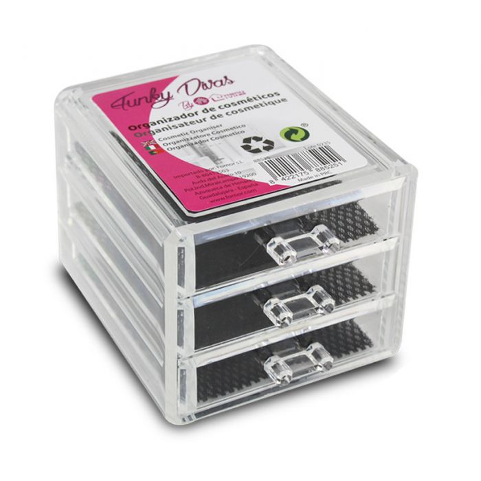 OOrganizador de Cosméticos de 3 Gavetas Fornor é o melhor sítio para guardar os seus cosméticos de forma ordenada. Com 3 gavetas para os organizar por cor, por parte do corpo ou como quiser, nunca mais perderá aquele cosmético que nunca consegue encontrar quando mais precisa dele.