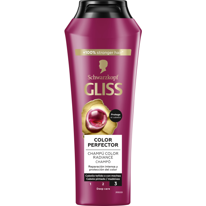 Elaborado para cabelos pintados ou com madeixas. Contém uma fórmula com complexo hialurónico e extrato de arando que limpa e cuida o cabelo, reparando e protegendo a cor e o brilho até 13 semanas.