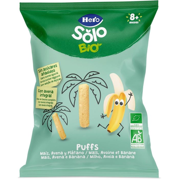 Hero Baby Solo BIO Snacks Puffs de Milho, Aveia Integral e Banana +8 Meses