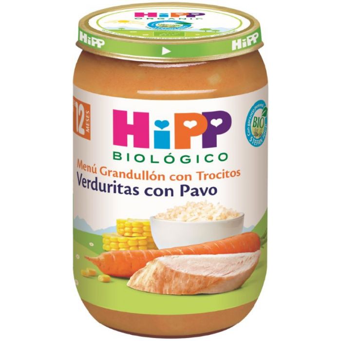 Os menus HIPP Orgânico de Verdurits com Peru são feitos a partir de ingredientes 100% biológicos, além de não conterem OMG (Organismos Modificados Geneticamente) de acordo com a regulamentação europeia na produção biológica.