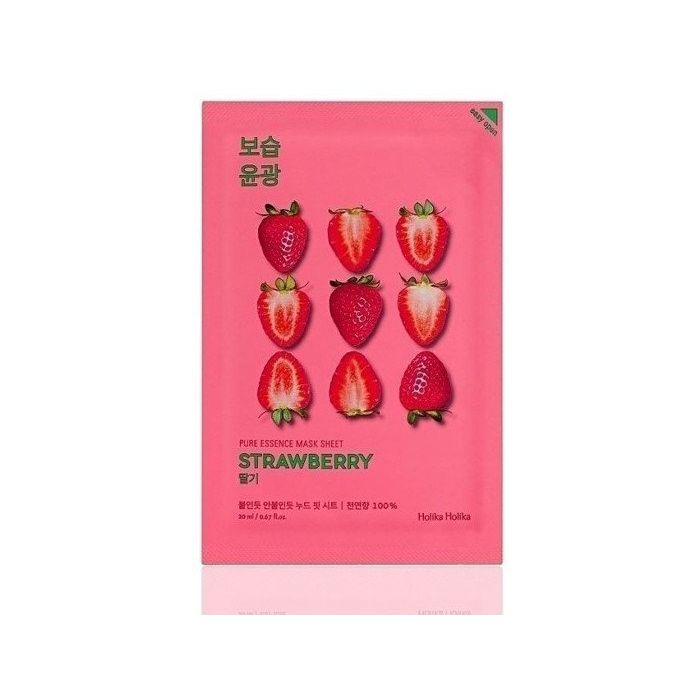 Holika Holika Pure Essence Máscara Iluminadora de Morango: A máscara iluminadora com extrato de morango Pure Essence de Holika Holika é responsável por iluminar e reduzir manchas e problemas de pigmentação na pele, ajudando a combater o tom irregular e as marcas de acne.