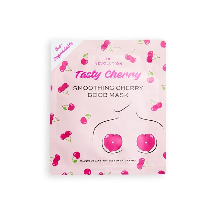 A máscara Cherry Boob Sheet Mask, parte da mais recente coleção de cuidados corporais da I Heart Revolution, é uma máscara ultra-hidratante para o peito.