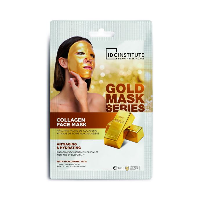 Máscara Facial de Colagénio Gold do Instituto idc: É uma máscara para a sua pele que nutre e hidrata para um rosto suave, bell, cuidado e com um efeito anti-idade que vai adorar. É uma máscara facial de hidrogel com ácido hialurónico, vitamina C e colágenio para uma tez suave, flexível, jovem e de aspeto radiante.