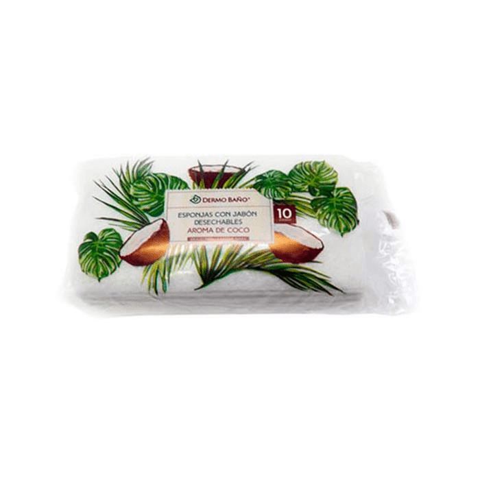 Esponja com sabão Dermobaño Coco de Jalsosa : São esponjas com sabonete descartável para a correta higiene e limpeza da sua delicada pele, ideais para a sua higiene diária com um aroma fresco e tropical de coco que você vai adorar.