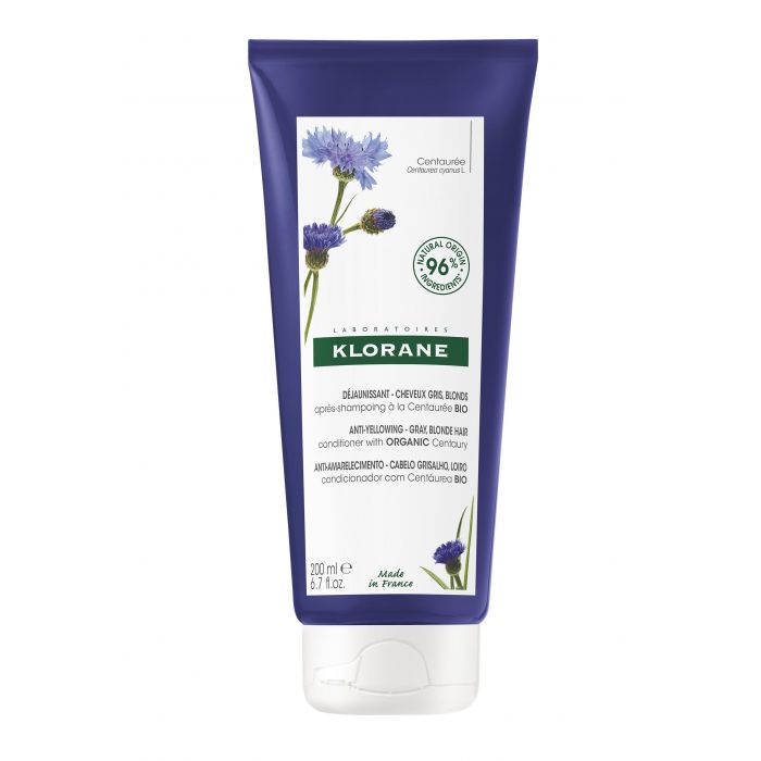 Ocondicionador bálsamo klorane Centaurée destina-se principalmente aos cabelos louros descolorados ou grisalhos naturais. O champô azul, também chamado champô anti-amarelamento, protege e preserva a cor dos cabelos louros.