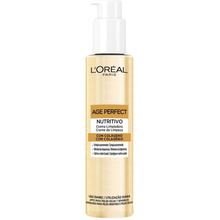 L'Oréal Paris Age Perfect Creme de Limpeza com Colagénio foi desenvolvida para peles maduras, oferecendo uma limpeza suave que remove impurezas e poluição enquanto nutre e acalma a pele.