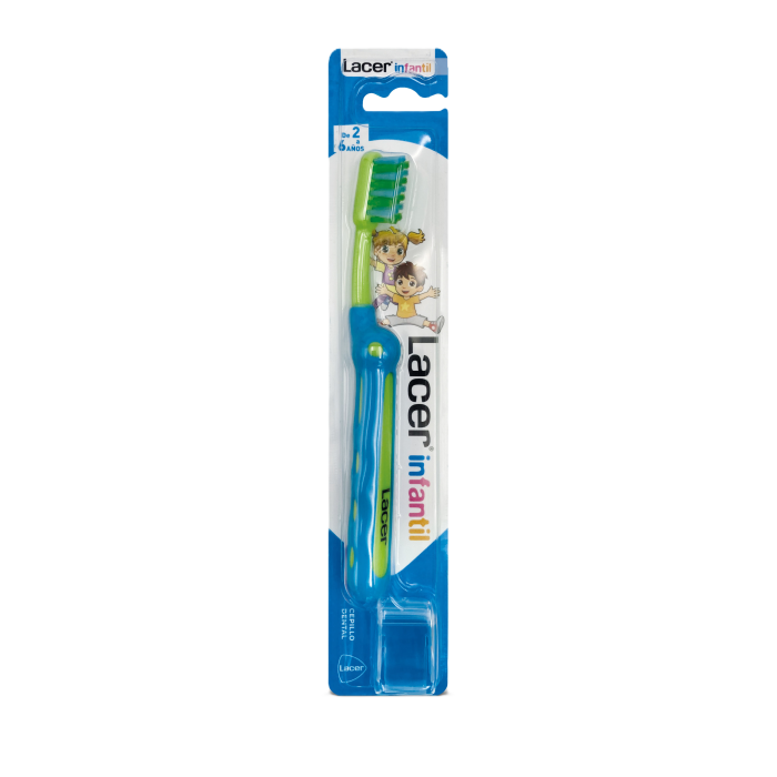 Ele Escova de dentes infantil Lacer projetada para NIÑOS 2 a 6 anos de idade, tanto por suas dimensões quanto por sua cabeça pequena e cerdas macias: