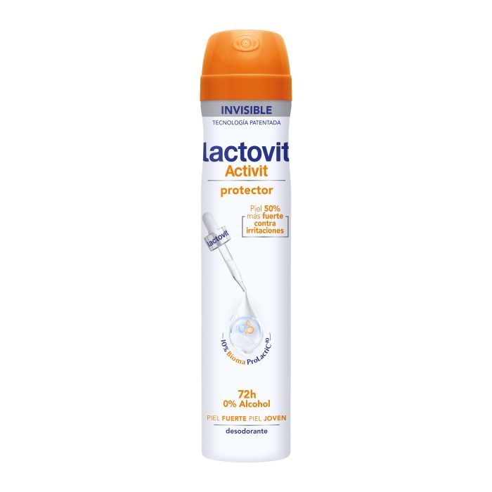 LACTOVIT DE SPRAY LACTOVIT DESODORANTE LACTOVIT: Desodorante em formato spray. Contém L. Casei F, um ingrediente que ativa as defesas da pele. É por isso que regula com eficácia a transpiração e evita os odores corporais ao longo do dia. Proteção máxima.