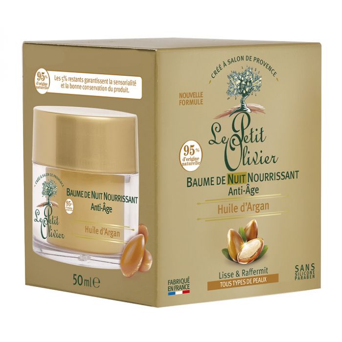 LE PETIT OLIVIER ARGAN OIL NIGHT BALM: Este bálsamo de noite nutre intensamente a pele e regenera-a combatendo os sinais de envelhecimento.