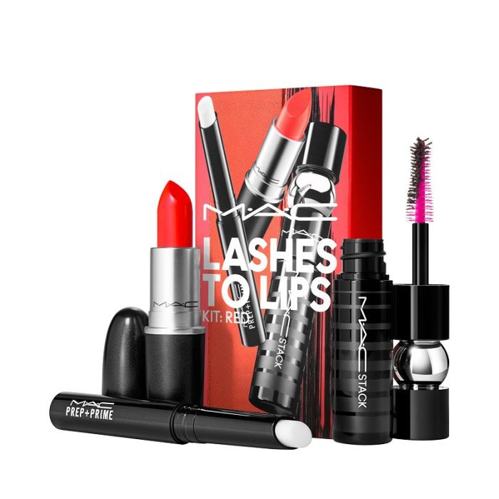O conjunto Lashes to Lips inclui uma máscara de pestanas M·A·C Stack Mascara / MINI M·A·C, o vosso favorito Prep + Prime Lip e o Matte Lipstick num tom nude para uma variedade de looks rápidos e fabulosos.