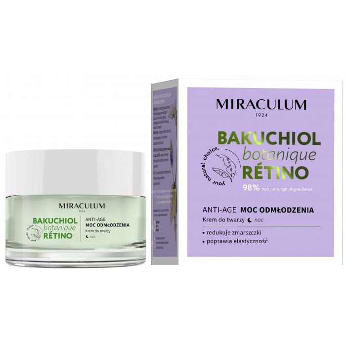 Efeito do creme de noite miraculum bakuchiol retinol - redução visível das rugas e rídulas - melhoria da elasticidade e suavização da pele - tez visivelmente rejuvenescida e radiante.