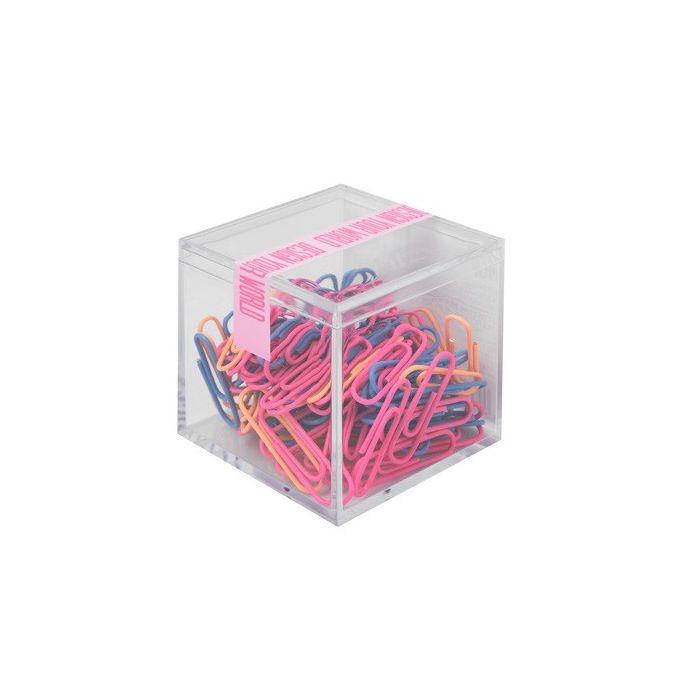 Talheres TRANSPARENTE que incluem 100 clipes metálicos de cores forrados. Ideal para segurar notas e várias folhas ao mesmo tempo.