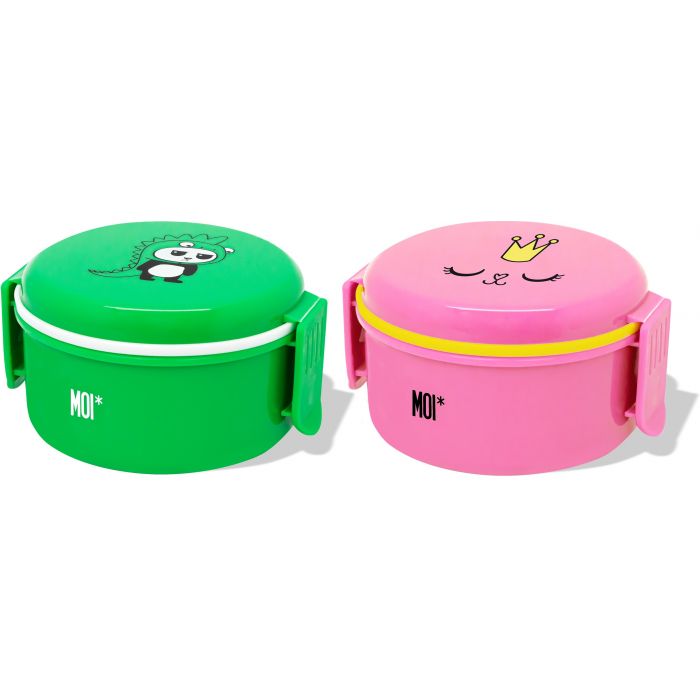 Termos do MOI*: Deixe seus animais acompanhá-lo em seus almoços e lanches com os novos transportadores de alimentos! Contém duas caitas independentes e fechamento hermético. O compartimento inferior inclui um garfo embutido na tampa. Você pode compactá-lo colocando uma caixa dentro da outra.