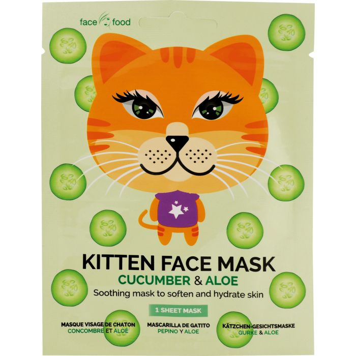 Máscara têxtil fina com pepino e aloé vera e um bonito motivo animal.