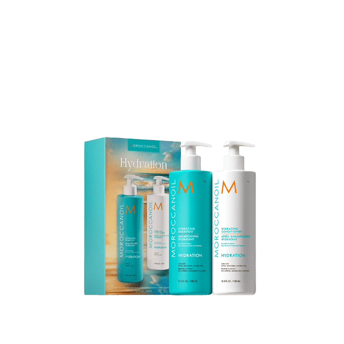 Cuida do teu cabelo com o Kit Hydration da MOROCCANOIL, um duo essencial que proporciona hidratação ideal, limpeza suave e um acabamento sedoso.