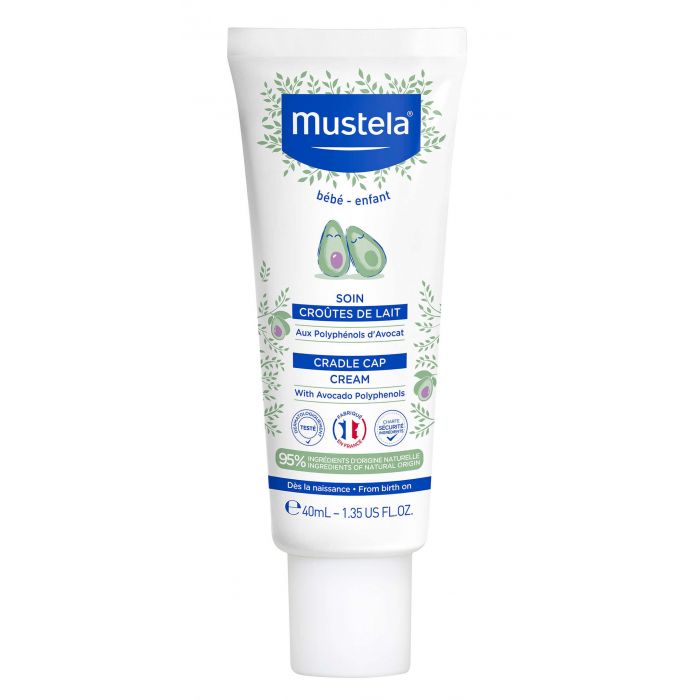 Mustela Cuidado da crosta láctea contém uma fórmula de origem natural à base de um princípio ativo higienizante extraído do abacate que ajuda a limitar o excesso de sebo para prevenir o aparecimento da crosta láctea.