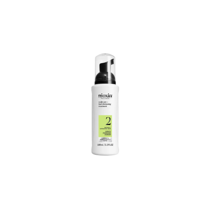 O Tratamento Scalp & Hair sem enxaguamento do Sistema 2 da Nioxin, desenvolvido para cabelos naturais com perda avançada de densidade, refresca o couro cabeludo e aumenta o volume capilar. Esta espuma de tratamento voluminizadora sem enxaguamento ajuda a densificar cada fibra capilar, conferindo ao cabelo um aspeto mais encorpado e volumoso.
