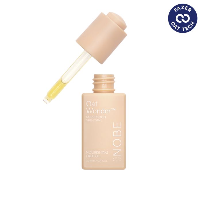 O Oat Wonder® Nourishing Face Oil da NOBE é um óleo facial nutritivo e benéfico para a pele, formulado com o superalimento nórdico em forma de óleo de aveia orgânico da Fazer.