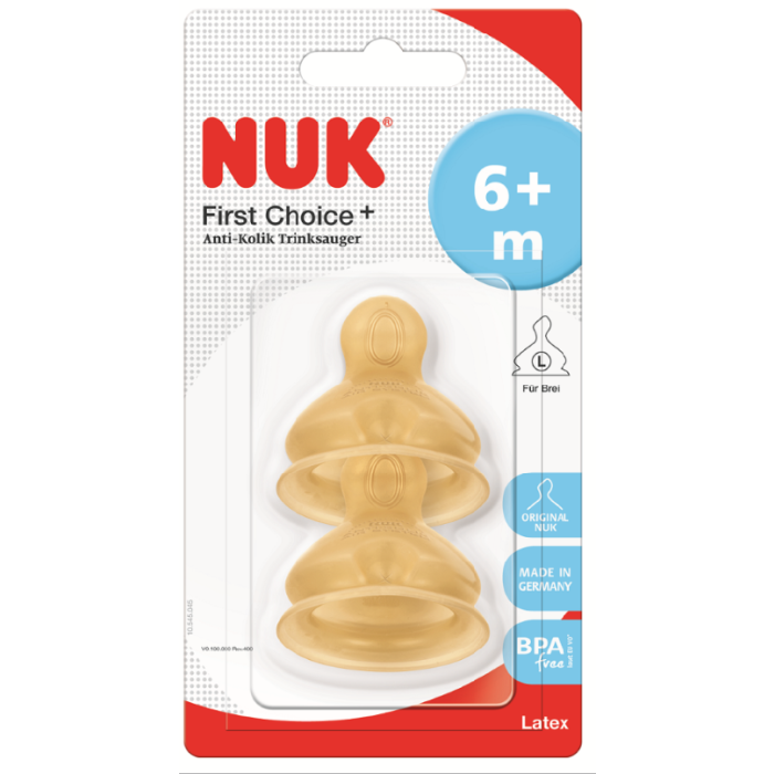 Adapta-se perfeitamente à mandíbula, tamanho S (orifício pequeno = água, infusões ou leite materno). O seu sistema de ventilação NUK AIR SYSTEM melhorado ajuda a prevenir cólicas.
