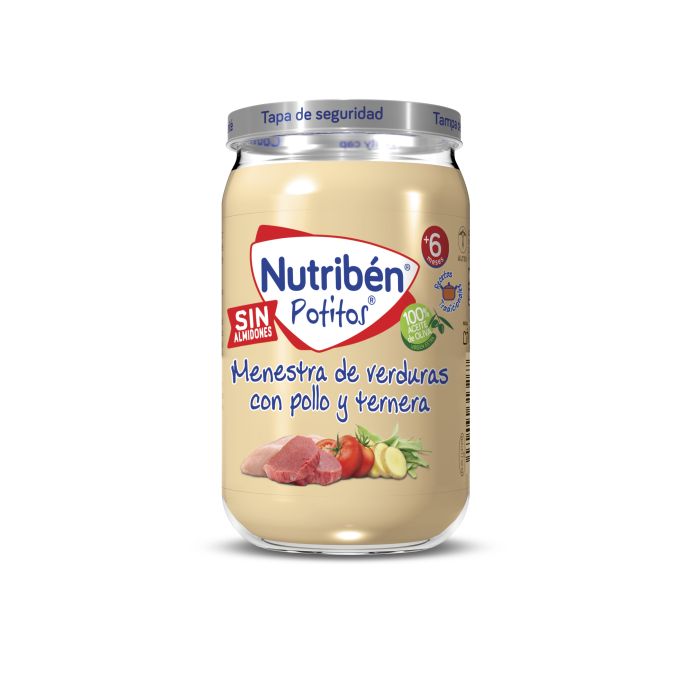 Pote de Frango e Carne com Feijão Verde de Nutribén criado para alimentar seu bebê a partir de seis meses de idade ajudando-o a ter uma dieta variada. À base de uma receita tradicional feita com ingredientes frescos. Com frango, viúdo, tomate, batata, feijão verde, arroz e azeite extra virgem 100%. Perfeito para introduzir alimentos sólidos em sua dieta.