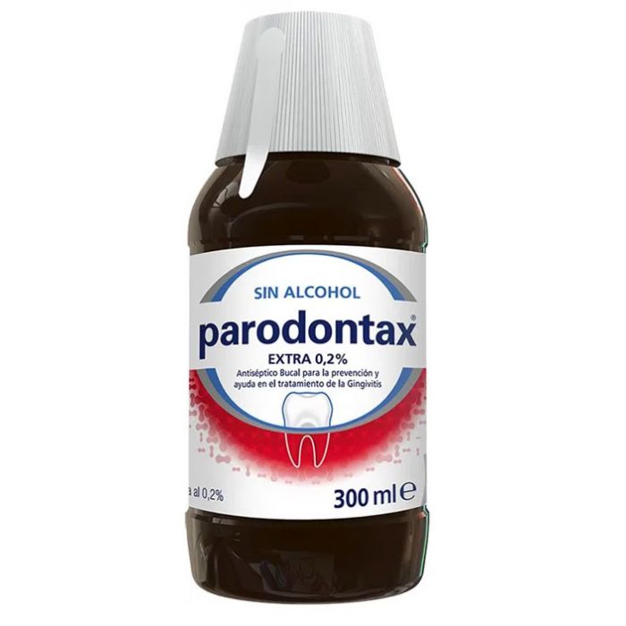 Colutory extra 0,2% Parodontax criado para bocas com propensão para o alto acúmulo de placa bacteriana que resulta em gengivite aguda, cavidades, periodontite progressiva rápida ou estomatite de dentadura.