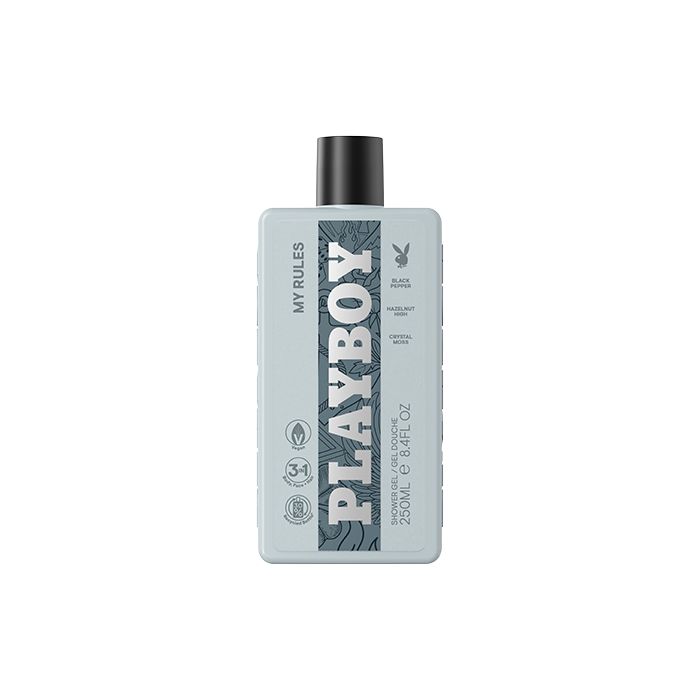 Este gel de duche 3 em 1, criado para corpo, rosto e cabelo, faz parte da coleção de fragrâncias My Rules. Fórmula vegana, apresentada num frasco com 30% de plástico reciclado (excluindo tampa e etiqueta).