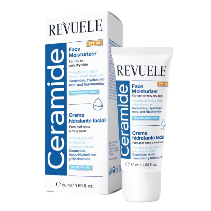 Revuele Creme Facial com Ceramidas SPF25 foi especialmente projetado para pele seca e muito seca. Esta solução contém uma fórmula leve e não pegajosa que fornece proteção UV e ajuda a fortalecer a barreira da pele. Sua fórmula foi enriquecida com ceramidas essenciais, ácido hialuronico e niacinamida. Uma combinação que hidrata profundamente a pele ao longo do dia, deixando-a mais macia e saudável. Sua fórmula sem perfume é adequada para peles sensíveis.