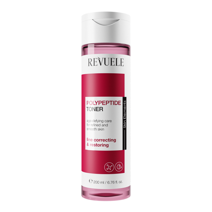 Transforma a tua rotina de cuidados com o Tónico REVUELE com Polipéptidos. Especialmente desenvolvido para o cuidado antienvelhecimento, este tónico é o teu aliado para alcançar uma pele mais refinada e incrivelmente suave. A sua ação corretora de linhas atua ativamente para melhorar a textura da pele e restaurar o seu aspeto jovem, oferecendo uma sensação de frescura e preparando a pele para os passos seguintes da tua rotina.