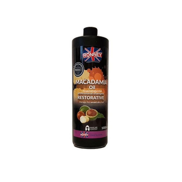 Champô Reconstituinte Óleo de Macadamia Ronney - O champô com óleo de macadamia hidrata o cabelo seco sem o deixar oleoso. O óleo dá brilho ao cabelo, fazendo-o brilhar novamente. O cabelo fica com um aspeto hidratado e cheio de luz. Ideal para cabelos fracos e secos.