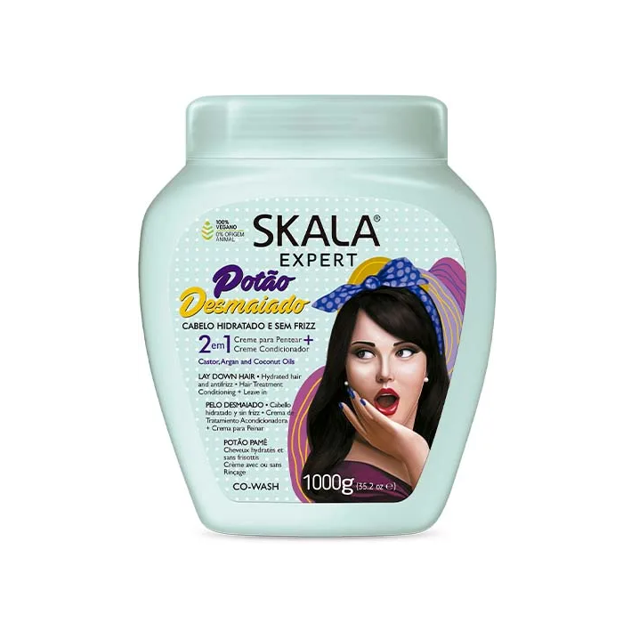 A Máscara Skala Potão Desmaiado foi formulada para eliminar o frizz, revitalizar o cabelo opaco, hidratar profundamente, reduzir o volume e manter os fios alinhados.
