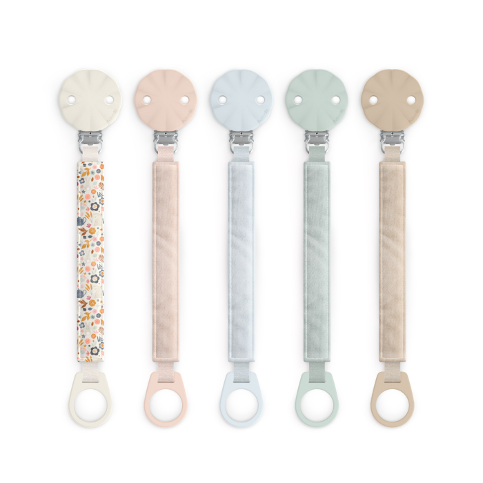Esta mola permite fixar os chupetas à roupeira do bebé, evitando assim que caia ao chão, sujeite-se ou se perca. Para bebés a partir dos 0 meses. O clipe de mola, que se prende à roupa, tem um olhal para inserir a chupeta. Broche com fita têxtil, reversível e com desenho estampado em ambos os lados.