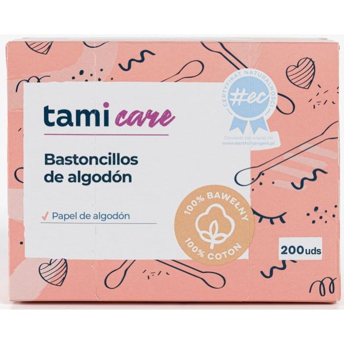 Os sticks higiénicos Tami Care são feitos de algodão 100% natural e de cotonetes de papel, o que os torna uma escolha ecológica e segura para os seus cuidados diários. Suave para a pele e resistente ao desgaste, este produto é ideal para a higiene pessoal, retoques de maquilhagem ou cuidados com o bebé.